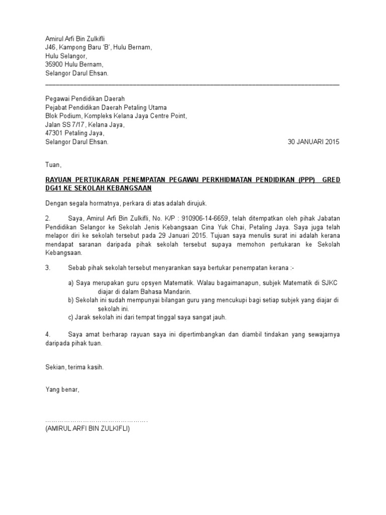 Contoh Surat Rayuan Pertukaran Guru. Majlis diteruskan lagi dengan menjemput dan mempersilakan yang berusaha cikgu noor malawati bt aspan untuk tampil bagi menerima surat pelantikan sebagai guru besar baharu sekolah kebangsaan kota masai. Contoh Surat Permohonan Pindah Tugas Jika anda bekerja pada suatu instansi pemerintahan ataupun perusahaan swasta maka anda pun harus menaati semua peraturan yang ada tidak terkecuali dengan penempatan kerja.